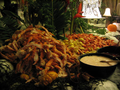 Crab legs and cocktail shrimp for crustacean lovers.